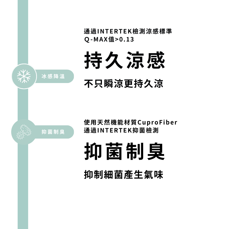 不僅有型舒適,更集瞬間涼感、吸濕快乾、抗菌抑味、抗 UV、抗靜電等多重實用機能於一身。一件 T 恤,滿足您對質感生活的所有想像。