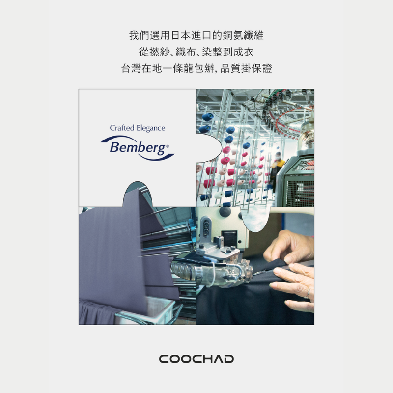 最好的材質,需要最好的工藝來成就。我們堅持在台灣進行紡紗、織布與染整,憑藉數十年的紡織經驗與技術,將 Bemberg™ 的優勢發揮到極致,確保每一件酷爵 T 恤都擁有細膩的質感、平整的縫線與優良的耐用度。這是我們對品質的承諾,也是對在地產業的支持。