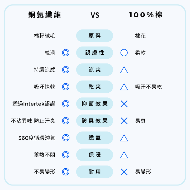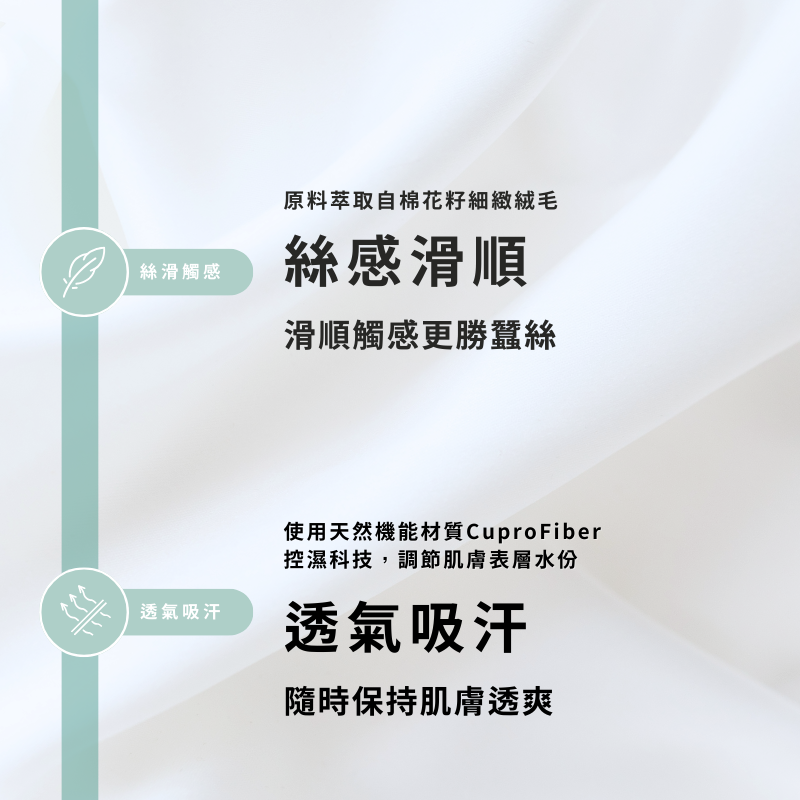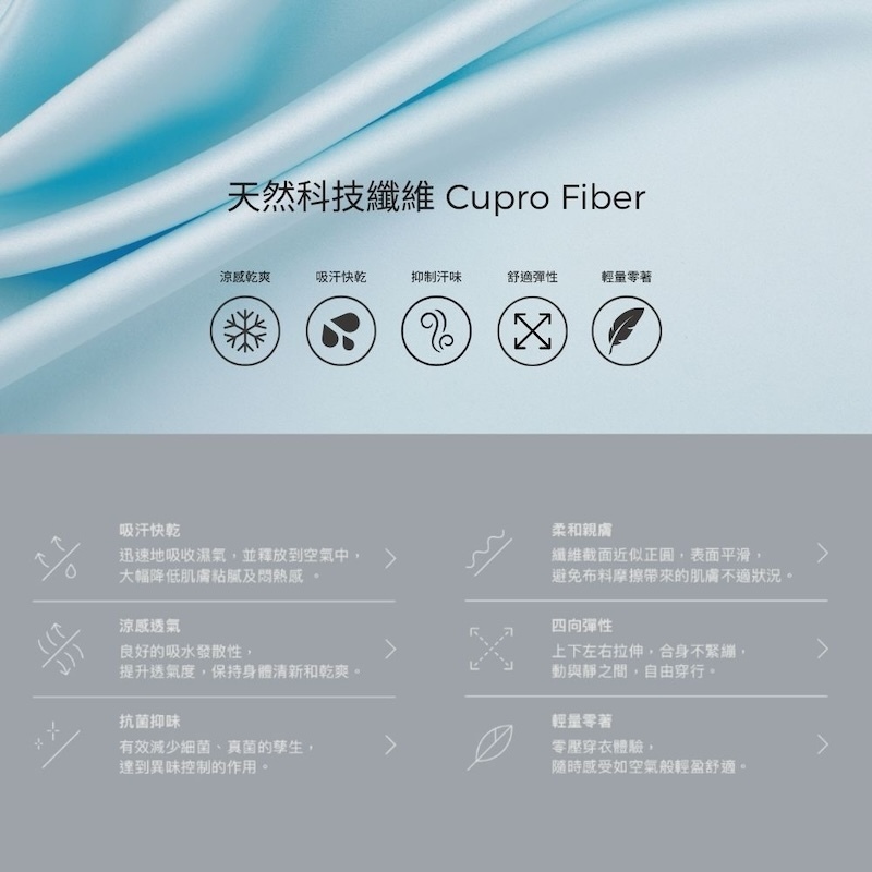 感受 65% 日本 Bemberg™ 銅氨絲帶來的奢華體驗!如絲般滑順的觸感,結合 360° 環繞透氣特性,讓肌膚自由呼吸,即使在濕熱天氣也能告別黏膩,保持全天候乾爽。