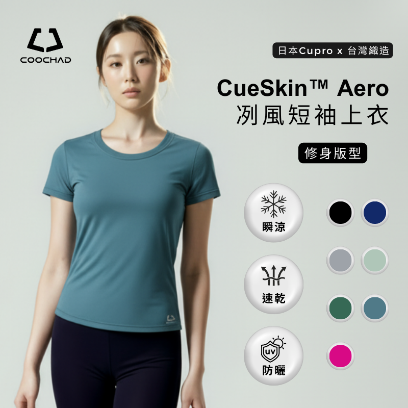 製成酷爵CueSkin新肌系列銅氨絲機能衣。無添加化學助劑,機能特性並不會因洗滌次數而衰竭消失。