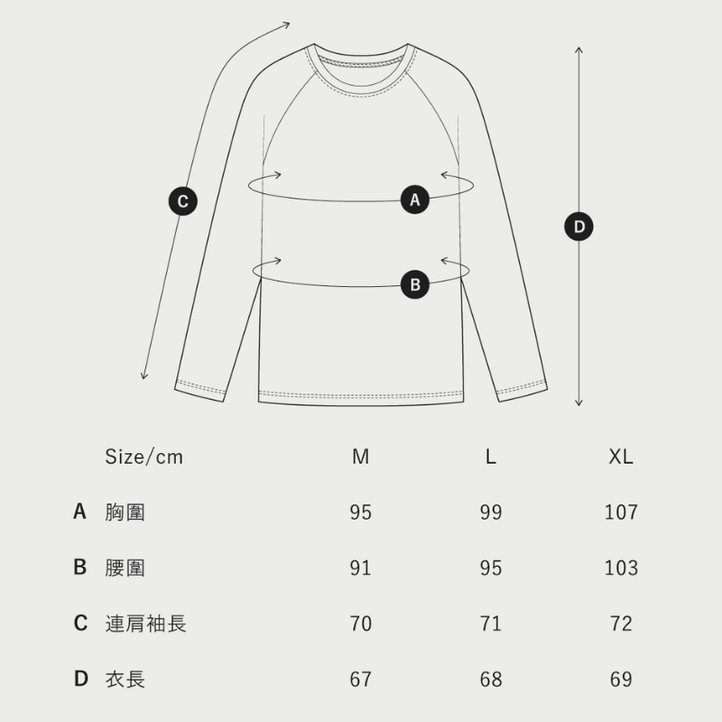 肩袖一體的拉克蘭袖設計,完美貼合肩部線條,提供絕佳的活動範圍。