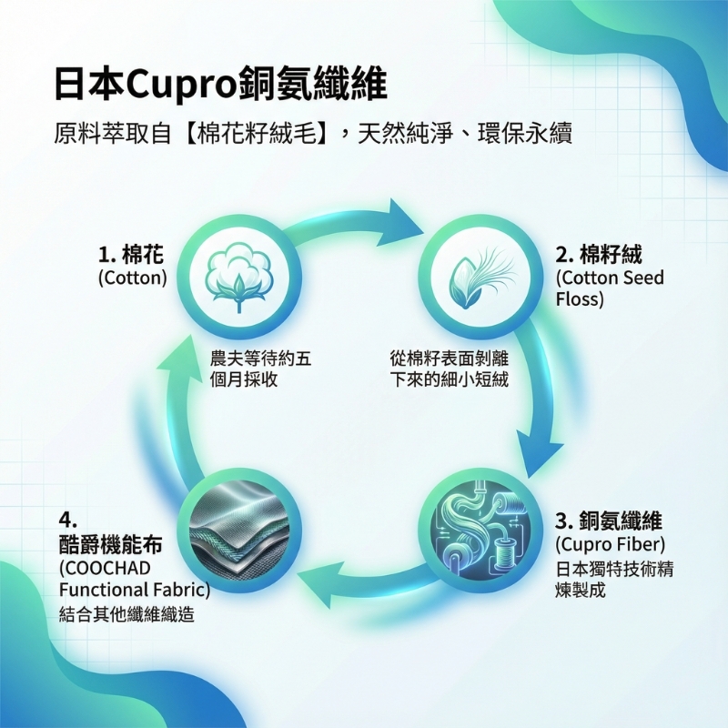 嚴選天然可分解銅氨纖維,搭配在地數十年紡織工藝。