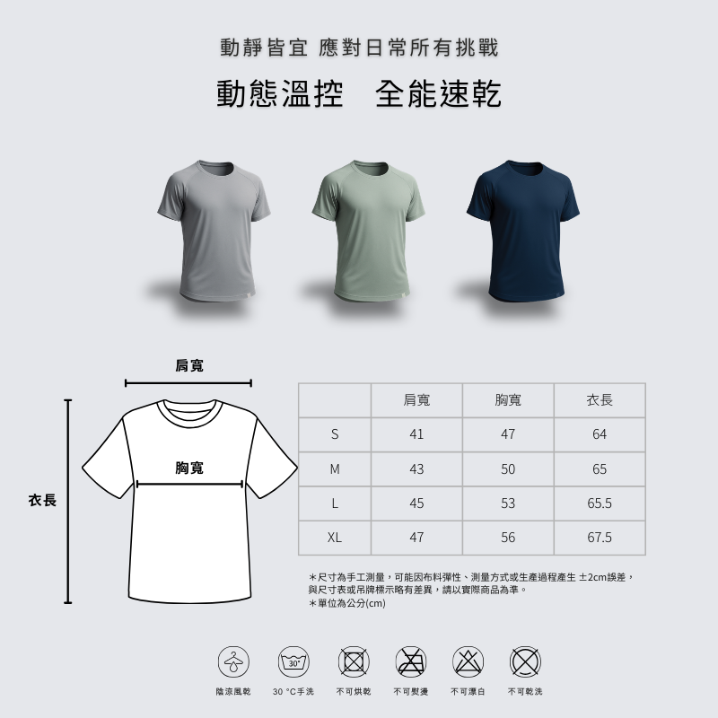 • 吸濕排汗快乾,保持乾爽舒適