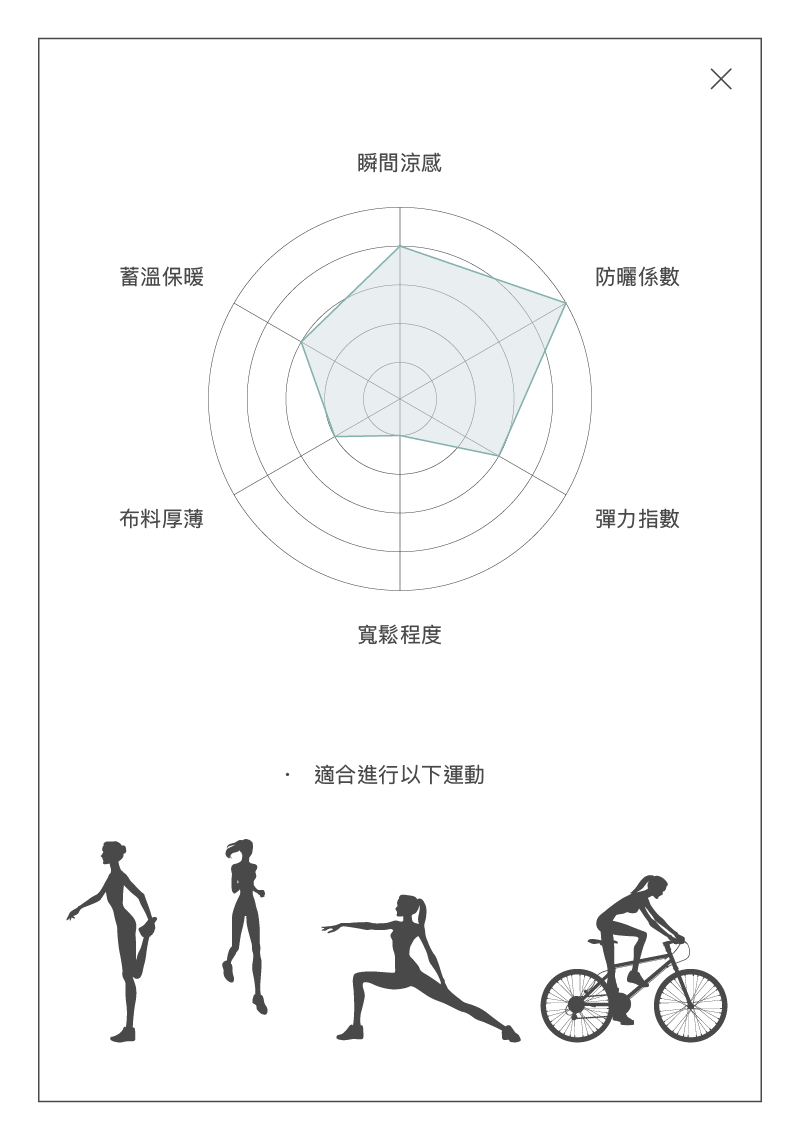 “Cupro“科技纖維控濕科技,可將肌膚表面汗水快速吸收蒸發,持續乾爽舒適,更能全心駕馭律動的快感。